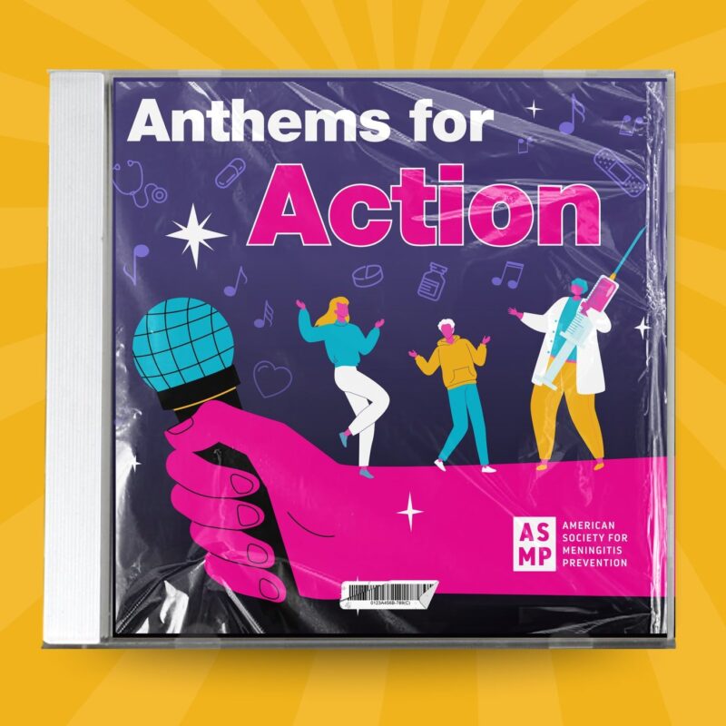 The American Society for Meningitis Prevention (USA) “drove out” meningitis with the creation and distribution of 140+ bumper stickers across 34 US states. They also created Anthems for Action, a resilience playlist of songs curated by advocates who’ve faced meningitis through survival, loss or love.